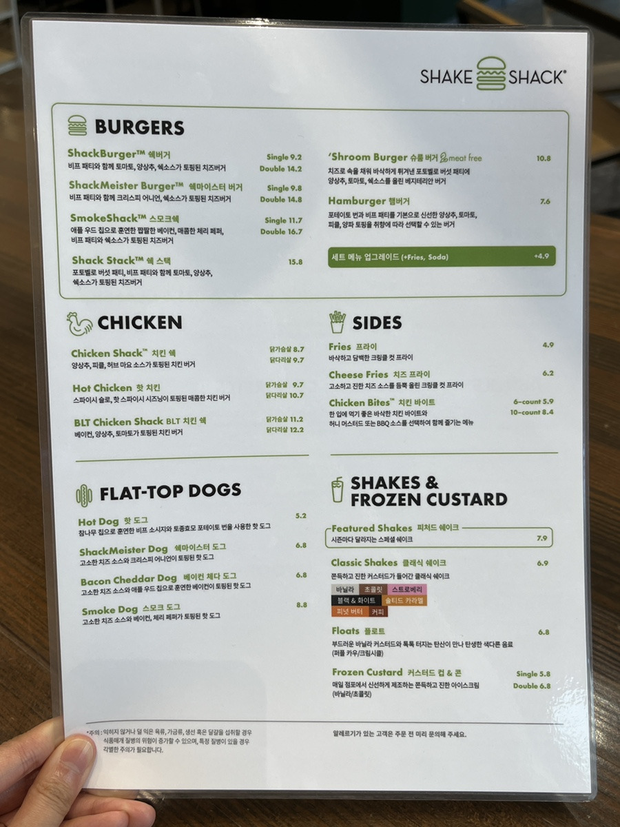 매우 합리적인 가격으로 쉑버거를 즐기고 있었음