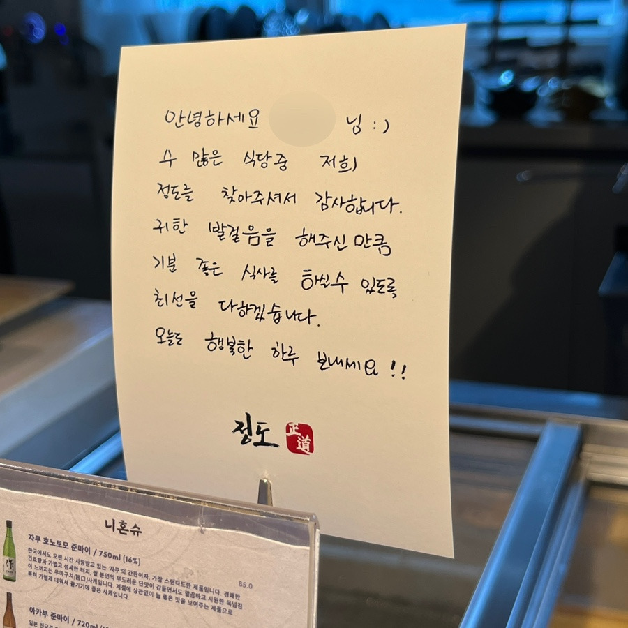 자리에 예약자로 문구도 남겨주신다
