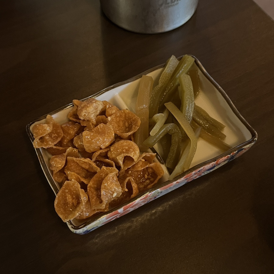 기본으로 나오는 소라과자랑 궁채 장아찌