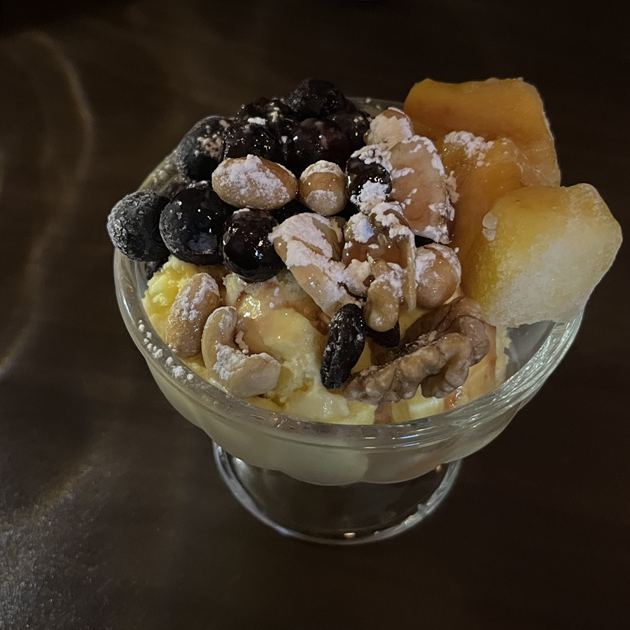 망고셔벗은 블루베리, 견과류, 망고가 올라간다